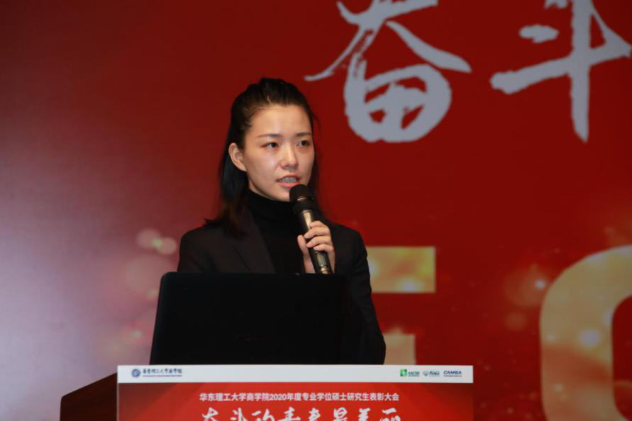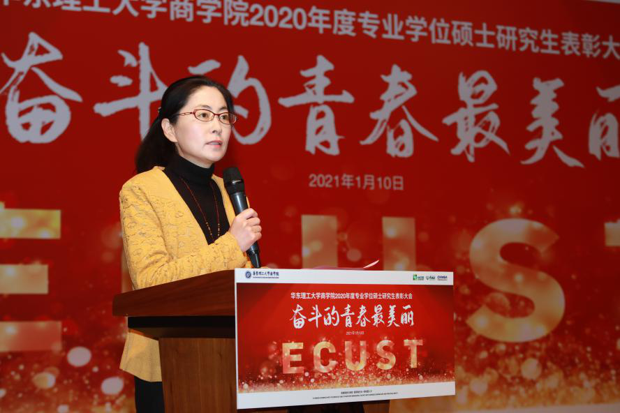 侯丽敏代表商学院致新年寄语,她表示2020年是极不平凡的一年,面对突如其来的新冠肺炎疫情,全国人民在党中央的英明领导下,在这极不寻常的年份创造了极不寻常的辉煌,所以正如习近平总书记在新年贺词中说的,每个人都了不起。华理商学院坚持立德树人根本任务,一方面全力推进防疫,积极配合学校做好校园管控、师生管理等工作;另一方面同学们依旧追求卓越,停课不停学的同时,不断开拓创新创,在各类学科竞赛、文体赛事中屡获佳绩。同时,商院人在疫情面前,发扬抗疫精神,主动捐款捐物,投身疫情防控、医疗救治和志愿服务工作,做出了抗疫战争的华理贡献,并荣获了“2020年中国MBA抗疫先进集体”的荣誉称号。值此辞旧迎新之际,侯丽敏向同学们提出了期待和祝福,愿同学们,初心不改、奋斗不止。新的一年,以奋斗为座右铭,纵深推进高质量、内涵式发展,书写商学院新篇章。