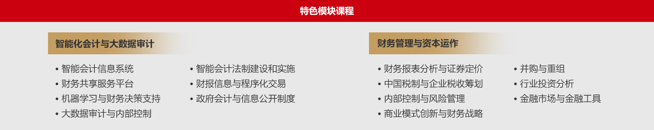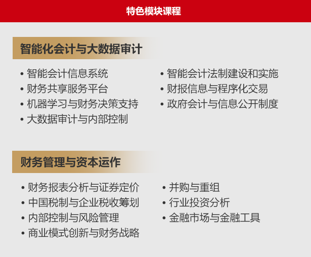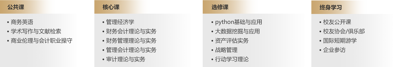 培养系统掌握现代会计学、审计学、财务管理以及相关领域专门知识和技能,具备较强的投融资策划等资本运作能力,具有高度社会责任感与职业操守,具有国际视野、又深谙中国国情,兼具数据分析和技术创新能力,掌握现代会计理论与方法,洞察、引领和实现智能会计的价值创造作用,适应大数据和人工智能时代管理变革的复合型高级会计人才。